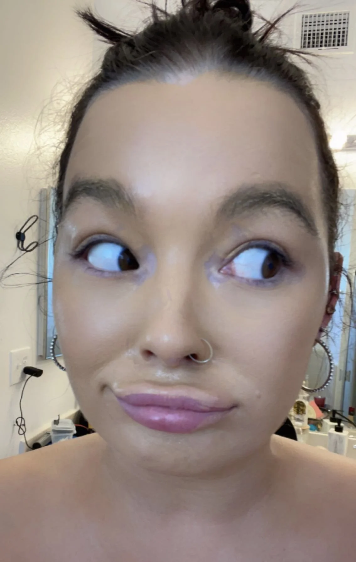 The makeup had started to separate, especially around my nose and mouth. It was also settling into the fine lines on my forehead and under my eyes.